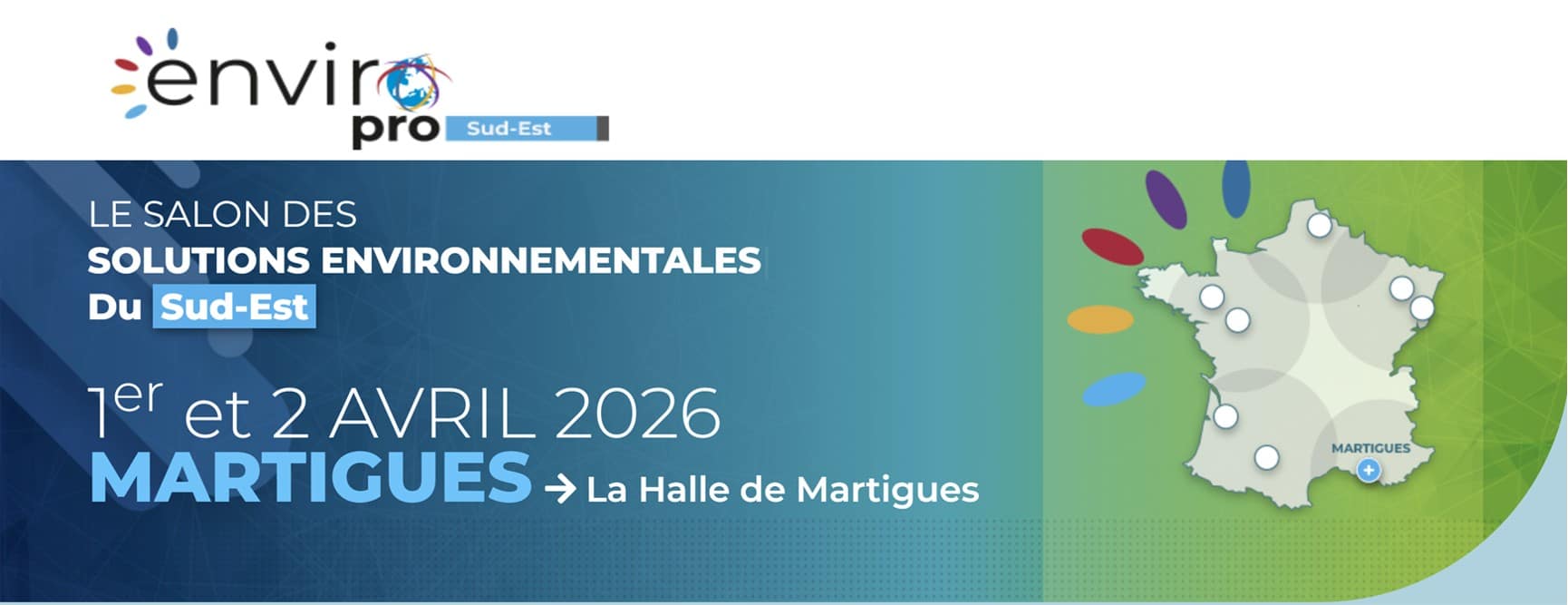 The ENVIROpro Sud-Est trade show will be held on April 1ᵉʳ and 2, 2026 at the Halle de Martigues. This professional event, dedicated to environmental and energy solutions, will bring together public players, innovative companies and research organizations around the themes: water, energy, waste, mobility, biodiversity, and air-odors.
